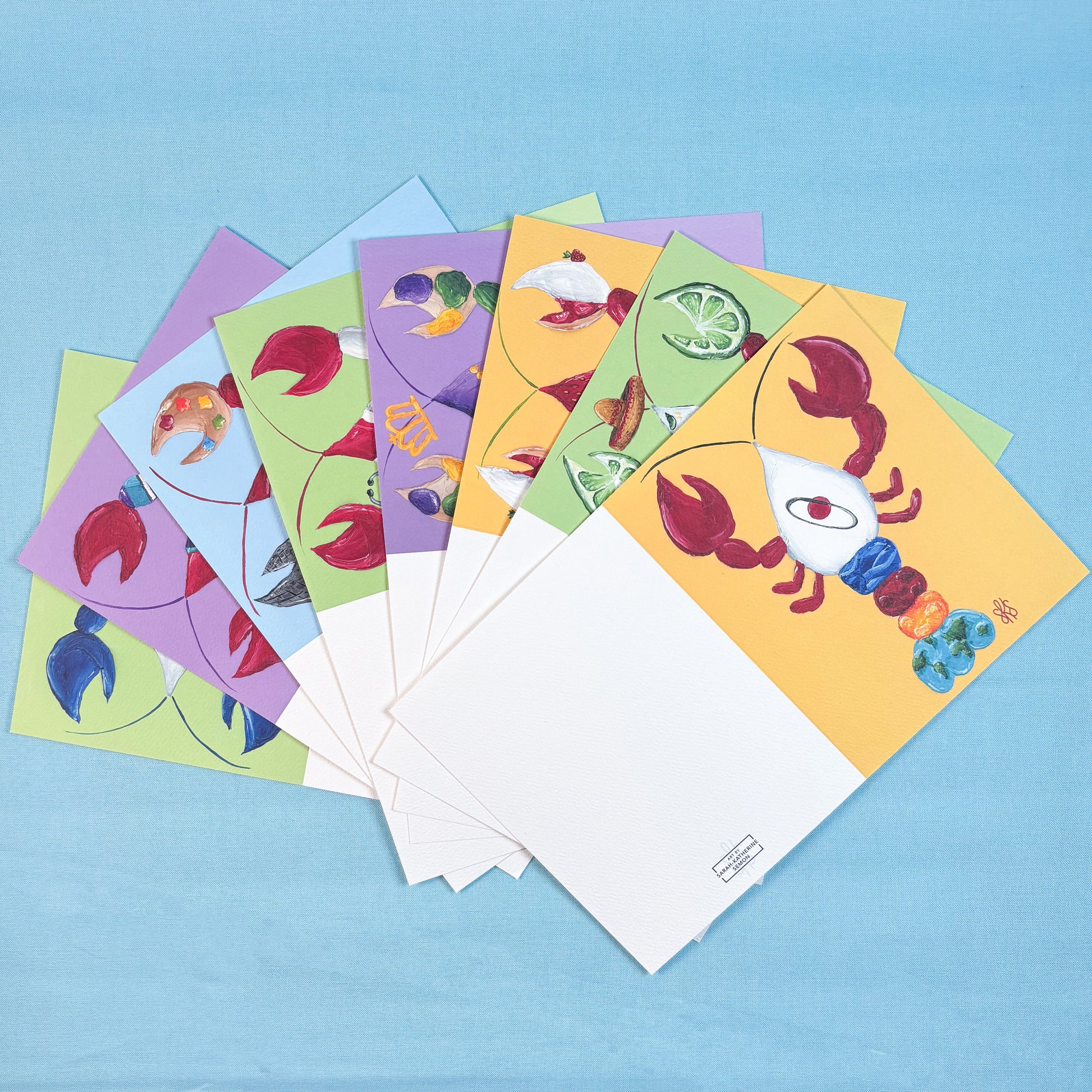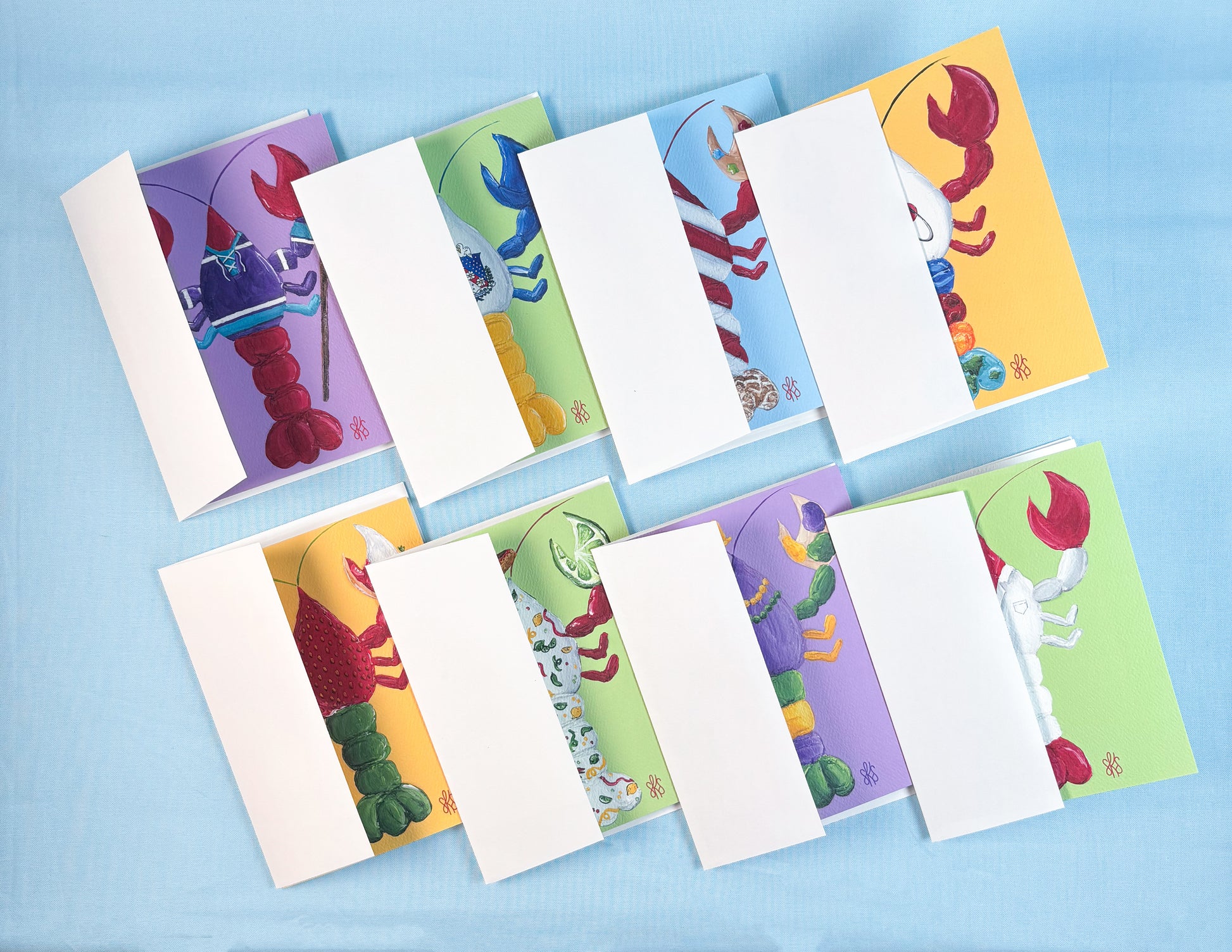 Introducing the Shreveport Crawfish Assorted Stationery Set, a collection of greeting cards featuring original designs by artist, Sarah-Katherine Semon. The set includes eight cards, each featuring a crawfish from "A Round of 'A-Claws' for Shreveport," the original art piece for ArtPort 2025. Along with the cards, each set includes 8 envelopes, making it the perfect all-in-one stationery package.